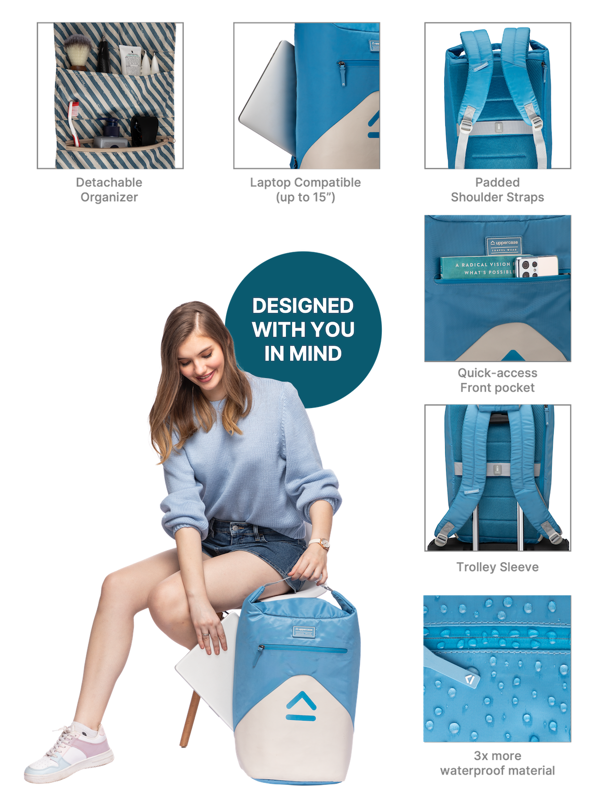 Prepare to break free from the conventional norms of backpacks that have remained unchanged for years. Get ready to embrace a revolutionary backpack that challenges the status quo. But the question is, are you ready to be cool enough for it? Introducing the handcrafted uppercase Large Outdoor Laptop Backpack in Sky Blue, the ultimate combination of size, durability, style, and lightweight design.