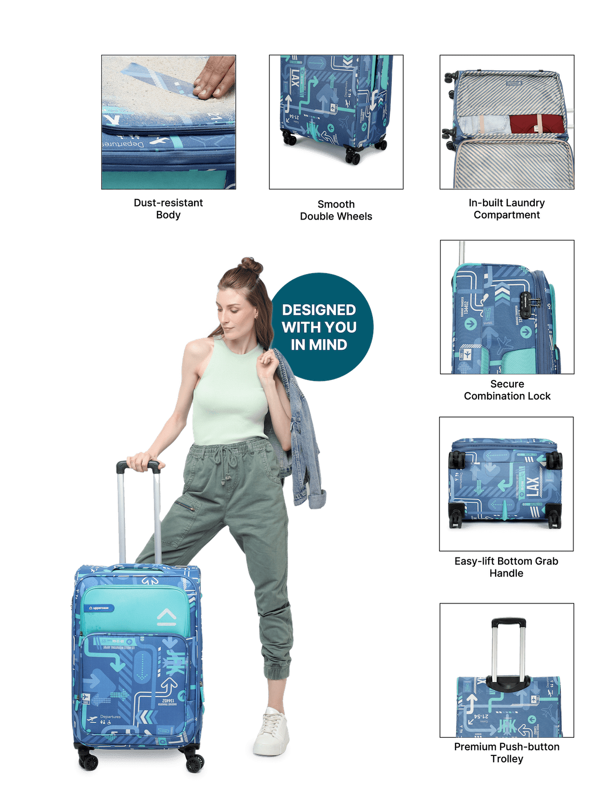 JFK Denim Blue Large Soft Trolley