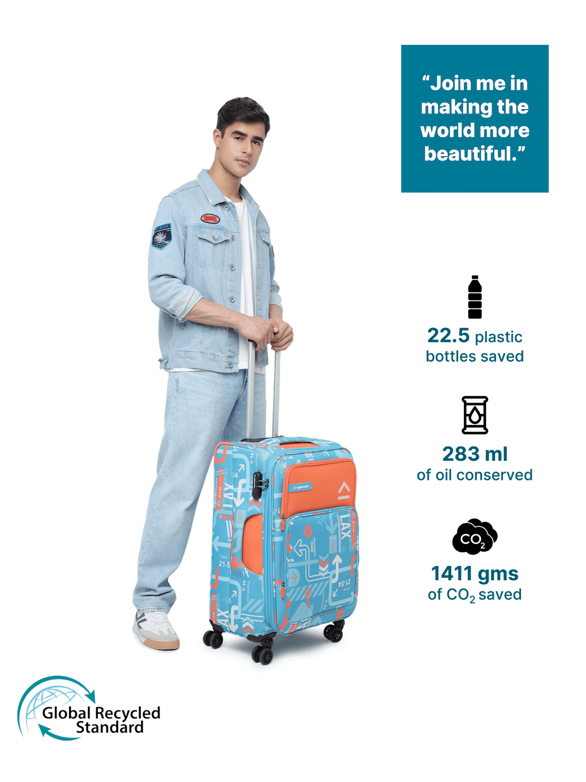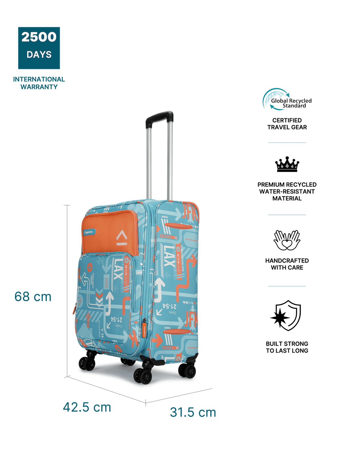 JFK Teal Blue Medium Soft Trolley